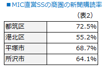 ところが(表2)に見る通り、当商圏では新聞購読率が6割程度に低下しています。スマホなどパーソナルメディアの普及によるものでしょう。