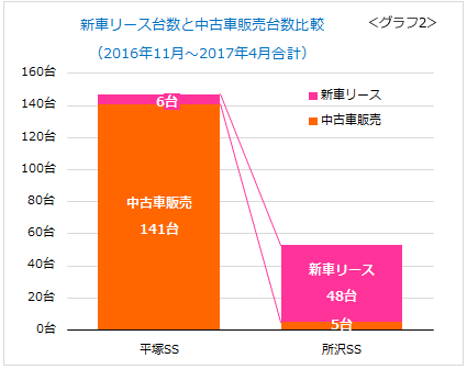 グラフ2は、当社の平塚店と所沢店の車販台数の内訳です。