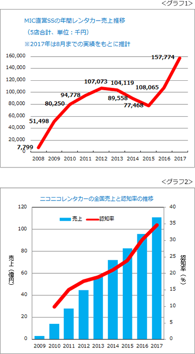 グラフ1は、当社レンタカーの年間売り上げの推移です。