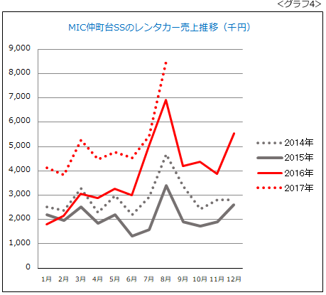 そして3カ月後の2016年2月、レンタカー業績は前年同月比プラスに転じます(グラフ4)。