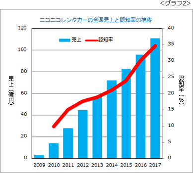 お陰で当社も晴れて「レンタカー需要の伸び」(グラフ2)の恩恵にあずかれるようになりました。