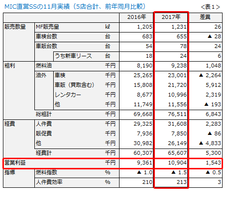 この原稿執筆時点の最新実績は昨年11月。全5店の合計値が表1です。