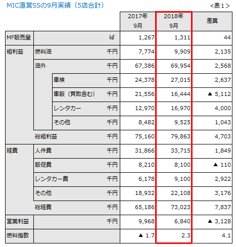 創刊60年を心よりお祝い申し上げます。 猛暑疲れでしょうか、9月は当社のSSに特筆すべき結果は出ませんでした。 5SS合計の営業利益は680万円。前年同月より300万円も下回ってしまいました(表1)。