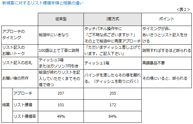 したがって「リスト獲り」こそが、ガソリン増販の出発点と言えます。 さて、この「リスト獲り」の効能が、今の時代にも通用するか、実は一抹の不安がありました。30年経って人情も価値観も変わってしまったかもしれない、SSもセルフ化され、お客様との関係もドライになってしまったかもしれないと。