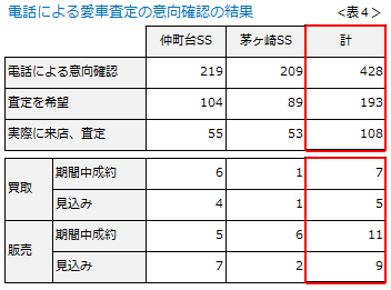 当社の寒川SSで9日間のキャンペーンを実施、80台を査定し、12台を買取り、15台の販売につながったと記しました。