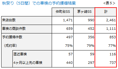 この「秋祭り」は、車販活性化の方向性が検証確認できたという意味で、収穫がありました。しかし、本来の狙いは車検の「青田刈り」でした。