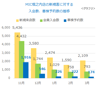 堀之内店はオープン以来、新規客を会員化し、さらに、車検を予約していただく活動を行ってきました。これが堀之内店の営業基盤を形成します。ですから、今後もこれをルーチン活動とし、決しておろそかにしてはなりません。