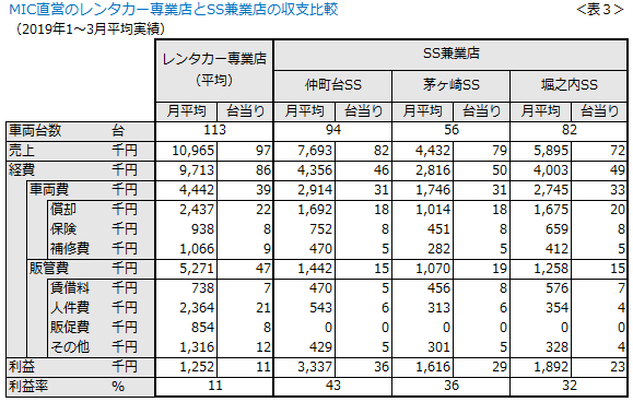 SSレンタカーは、コスト負担が小さいために一般貸し渡しだけで1台当たり月間3万円の利益を出せます。