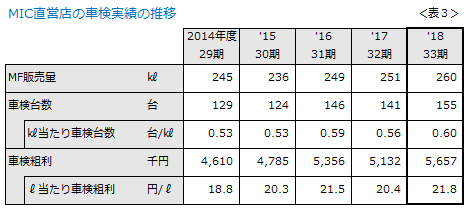 需要の「当たり年」「ハズレ年」はありますが、当社SSでは不動のナンバーワン商品です。 昔懐かしいSS指標「L当たり粗利」を算出すると、車検だけで20円を超えます(表3) 。