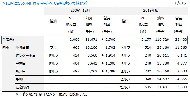ちなみに13年前と今回の当社SSの収益構造を比較してみました。表3に示します。