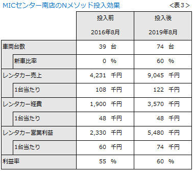 当社のセンター南店(旧茅ヶ崎店)の、「Nメソッド」投入前と投入後の8月実績を比較しました(表3)。