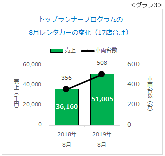 活動の第1段階は、8月の売上目標を達成することでした。店ごとに「いくらの予算で、どの車種(年式)を、何台増車する」と意思決定していただきました。そして、9月の会合で、その結果を検証しました(グラフ3)。
