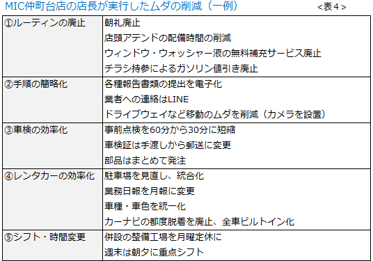 そこで仲町台の店長は、拡販だけでなく、ムダの削減にも目を向け始めました(表4)。