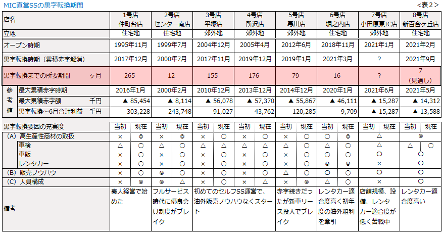 1号店の仲町台店にいたっては、黒字転換まで265ヵ月(約22年)。よくもまぁ我慢したものです。いや、最初に分かっていれば、SS事業に絶対に参入しませんでした。