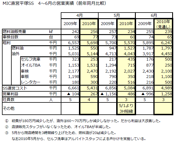 しかし、ガソリン口銭の下落に耐え切れず、赤字が続いていました。そこでこの春から、思い切って体制を刷新し、徹底的にコスト削減を行いました。