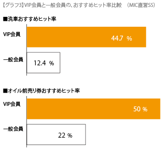 「グラフ3」は、洗車、オイル前売券を「お勧め」した場合の販売結果です。