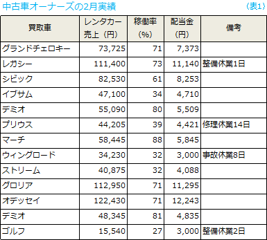 これから夏に向け、レンタカ ーの稼働率は上がりますから、年間15万円、20万円の配当を手にするオーナーも出てきそうです。