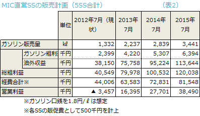 (表1)は、当社が運営する4ヵ所の直営SSの月間粗利益の構成を過去5年にわたって示したものです。