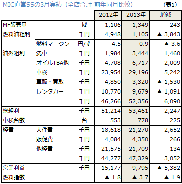 当社直営SSの3月実績を見てみましょう(表1)。