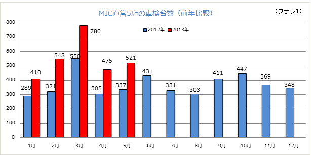 これがうまくいき、3カ月間で5,500件の車検予約が獲れました。 その成果が、3月頃より現れ始めています。予約キャンセル率も想定内に収まっており、前年同月に比べ約200台増となってきました(グラフ1)。