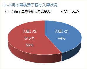 車検を早期予約した顧客のうち、3~6月の入庫状況は44%でした。たった数カ月前に車検を予約していただいた顧客の半数以上が入庫しません。あらかじめ事前点検日と車検実施日を約束しているにもかかわらずです。