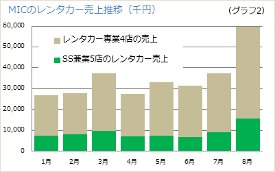 レンタカーは8月が最大の需要期です。今年も大きく利益貢献してくれました。車検が平月の半分しかないので、その不足分をレンタカーが埋めてくれた形です。