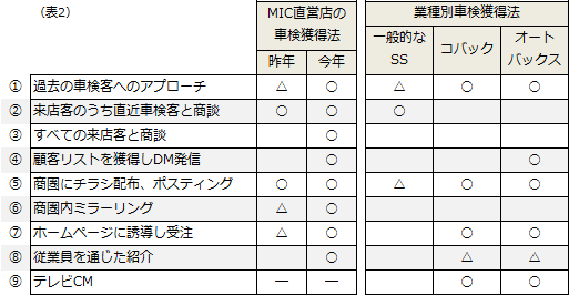 「表2」の②、すなわち直近車検の対象客に対し、店頭で商談して獲得した件数がかなり減少しているのです。