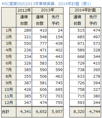 さて、当社SSの昨年1年間の車検実績が「表1」です。
