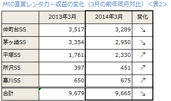「表2」は各店のレンタカー実績です。何と、仲町台SSと茅ヶ崎SSが前年よりダウンしているではありませんか。思い当たる節はひとつしか考えられません。