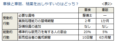 車検と車販を「業務処理」という観点で比べてみたのが(表2)です。