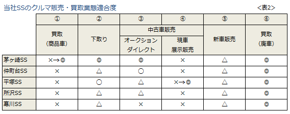 当社のSSがどの業態に向いているかも考えてみました(表2)。