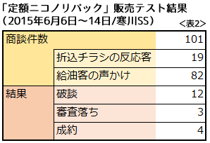 その結果、9日間で101件商談をし、4台成約しました(表2)。