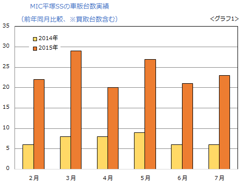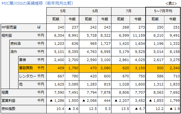 7月は新車、中古車を含め16台が成約し、下取り車も利益を出し、300万円を超える車販収益を計上しました。冒頭の「ニコニコステーション」構想の実現に、思いがけず寒川SSがリーチ一番乗りとなった格好です。