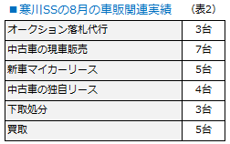 ともあれ、「マイカーリース」の発売を契機に、寒川SSの車販全体が活性化したのは事実です。(表2)。