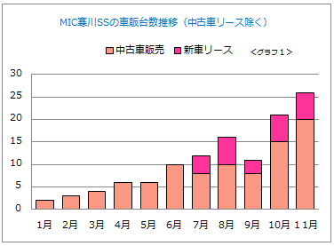 〈グラフ1〉は2015年の寒川SSの車販台数の推移です。