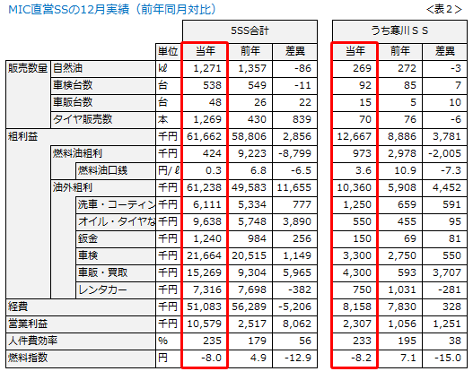 当社SSの「12月実績」がほぼまとまりました〈表2〉。