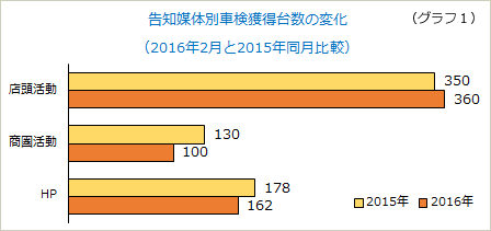 グラフ1は告知媒体別の車検獲得台数の変化です。 車検に投入してきた広告宣伝費を、車販(個人向けオートリース)に転換したのです。