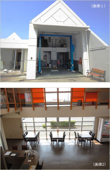 さらに嬉しいことに、SSの建屋がほぼそのまま残っています。バブル期に造られたSSで、田舎には珍しいオシャレな造り(画像2)、車の商談に「もってこい」です。