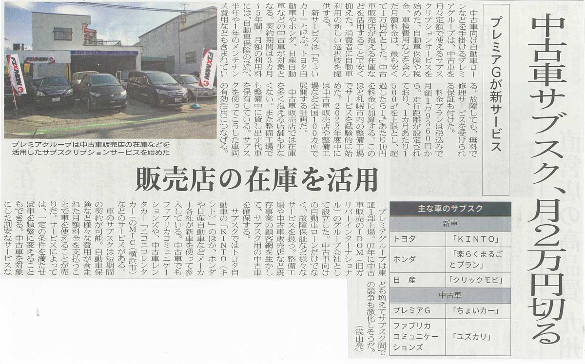 中古車サブスク、月2万円切る 販売店の在庫を活用